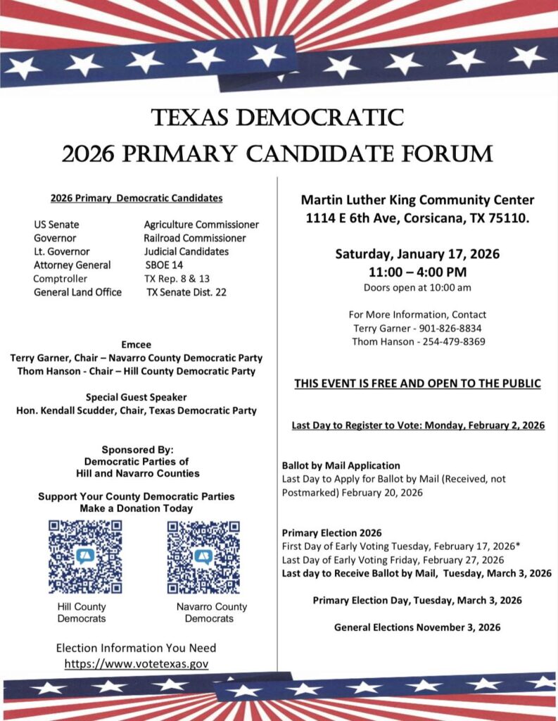 Hill and Navarro County are working together for a Candidate Forum.